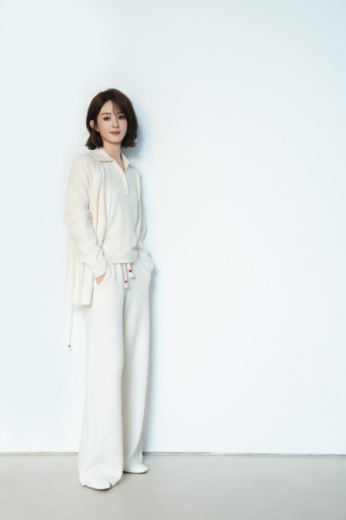 画面中,赵丽颖身着白色翻领开衫搭配同色阔腿裤,双手插兜的姿态松弛又自信。棕色齐肩短发衬得她肌肤胜雪,胸口那抹彩色图案恰似她性格中藏不住的灵动。这套造型完美诠释了“少即是多”的时尚哲学,与她近年来沉淀下来的沉稳气质不谋而合。